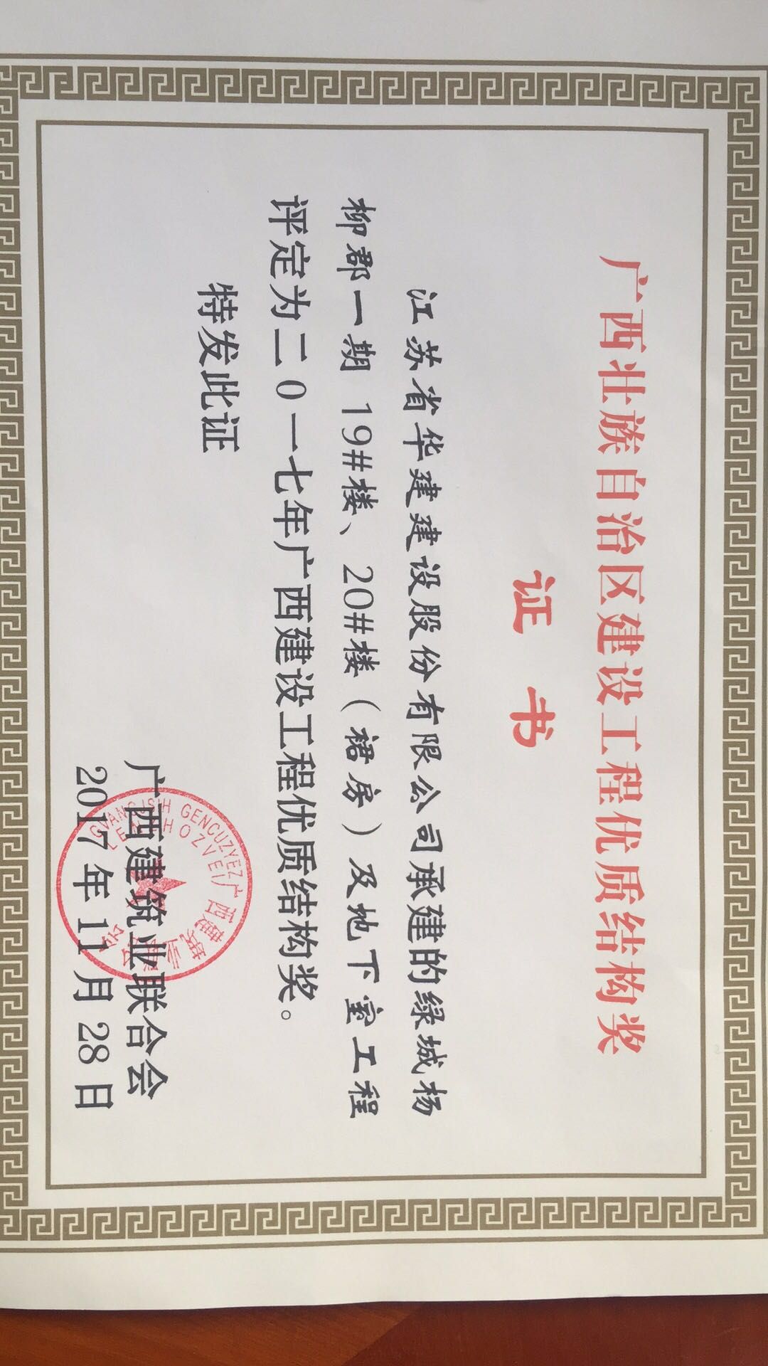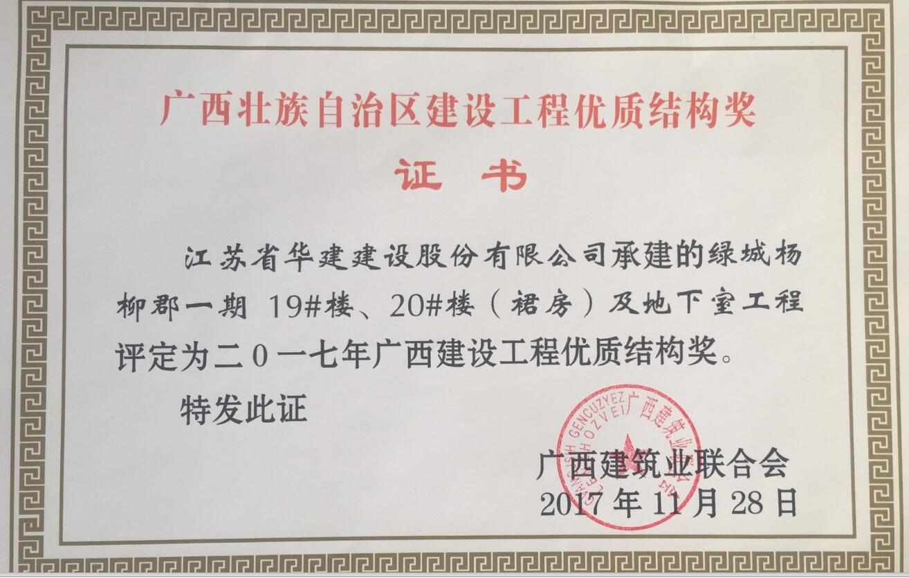 北京公司2項工程獲廣西區優質結構工程獎 時間:2017-12-26 3329 近期從廣西建筑業聯合會獲悉,我公司總承包施工的廣西自治區柳州市“綠城楊柳郡一期19#、20#樓(裙房)及地下室工程”和“綠城楊柳郡一期15#樓及地下室工程”兩項工程被評定為二0一七年廣西建設工程優質結構獎,這也是北京區域公司在廣西自治區獲獎的第一個項目。 該項目開工之初就明確了爭創廣西自治區優質工程的目標,在施工中,項目部注重實體結構質量,勇于技術創新,在北京區域公司內率先使用鋁模板施工工藝,在建設單位組織的第三方多次檢測也均取得了較好的成績。