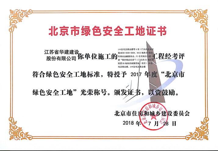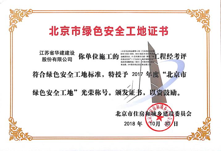 北京公司兩項工程獲北京市綠色安全工地 時間:2018-11-11 3973 近日,從北京市住房和城鄉建設委員會傳來喜訊,由北京公司總包承建的1#住宅及商業樓等4項(1#住宅及商業樓、2#住宅及商業樓)和1#住宅及商業樓等4項(3#限價商品房及商業樓、8#限價商品房及商業樓)兩個標段項目榮獲 “北京市綠色安全工地”光榮稱號,并獲頒證書。