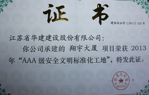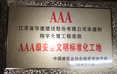 日前,由上海區(qū)域公司蘇北分公司承建的淮安翔宇大廈被中國(guó)建筑業(yè)協(xié)會(huì)評(píng)為2013年全國(guó)“AAA級(jí)安全文明標(biāo)準(zhǔn)化工地”,這是國(guó)內(nèi)安全文明施工最高獎(jiǎng)項(xiàng),旨在規(guī)范建筑施工安全生產(chǎn),保障建筑職工安全與健康,提高施工現(xiàn)場(chǎng)安全管理水平。這是上海區(qū)域公司第一次獲此殊榮,也是江蘇華建第8項(xiàng)全國(guó)
