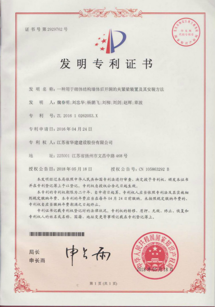 江蘇華建再獲1項發明專利、3項實用新型專利 時間:2018-06-06 3350 日前,從國家知識產權局傳來喜訊,江蘇華建上海區域公司發布的《一種用于砌體結構墻體后開洞的夾緊梁裝置及其施工方法》獲得發明專利授權(專利號:ZL201610262053.X),《一種建筑板材角磨機》(專利號:ZL201720592798.2 )、《一種建筑施工用鋼筋切斷機》(專利號:ZL201720593659.1 )、《一種建筑施工用混凝土攪拌機》(專利號:ZL201720593516.0 )獲得實用新型專利授權。