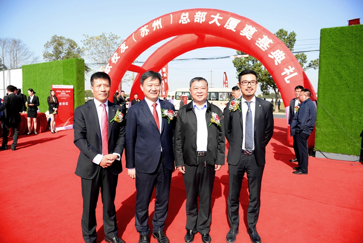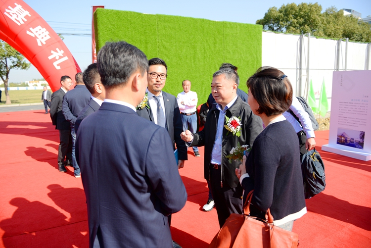 10月27日,江蘇蘇州工業園區,上海區域公司總包承建的中歐校友(蘇州)總部大廈奠基儀式盛大舉行,江蘇華建董事長王宏,副總經理、上海區域公司總經理楊杰等應邀出席。奠基儀式開始前,王宏董事長與中歐校友總會會長、中城聯盟輪值主席、朗詩集團董事局主席田明親切交談。王董事長對江蘇華建被選為總包單位參與大廈建設表示很榮幸,表態將以“魯班獎”標準抓好項目施工,努力打造成精品工程、標志工程、形象工程,為中歐校友會的發展盡心、盡力。田會長感謝江蘇華建對大廈建設的大力支持,希冀雙方的合作更加廣泛、更加深入。蘇州園區黨工委副書記、管委會主任丁立新,園區黨工委副書記、管委會副主任吳宏及中歐校友會校友等近200人出席儀式。