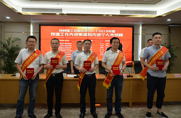 在建黨98周年、新中國70華誕來臨之際,6月28日下午,建工控股公司黨委隆重召開揚州建工控股系統“七一”表彰大會,對自2017年以來為推進系統企業改革發展作出突出貢獻的8個先進基層黨組織、30名優秀共產黨員、10名優秀黨務工作者進行表彰。會上,華建上海分公司機關黨支部被授予“先進基層黨組織”稱號,公司副總會計師束震、安裝處主任韓何兩位同志被表彰為“優秀共產黨員”。