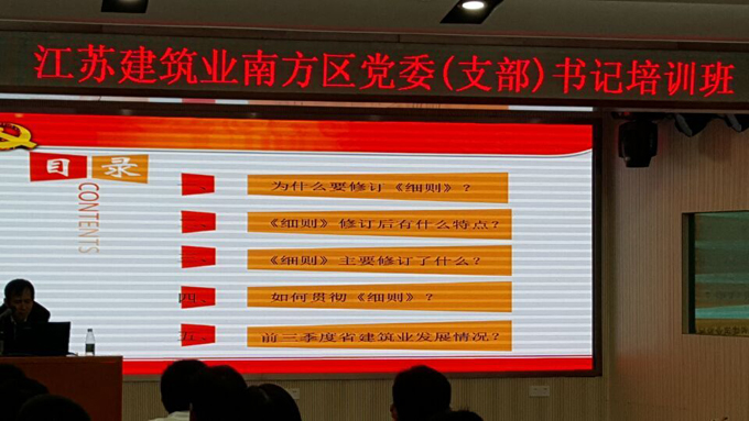 會上,江蘇省住房和城鄉(xiāng)建設廳機關黨委副書記丁舜祥針對《中國共產(chǎn)黨發(fā)展黨員工作條例》作了專題講座,詳細講解工作條例的主要內(nèi)容和特點、發(fā)展黨員工作的總要求、發(fā)展黨員工作的基本原則、黨員發(fā)展的條件標準、發(fā)展黨員的主要流程等方面內(nèi)容,并針對南方地區(qū)基層組織發(fā)展中存在的一些問題提出了明確要求。江蘇省住房和城鄉(xiāng)建設廳駐南方辦事處主任朱躍斌傳達了《住建廳黨組書記顧小平在廣東省調(diào)研重要講話指示精神》以及《住建廳駐外辦事處民工工資清欠工作精神》,并對建筑企業(yè)的進一步發(fā)展提出了指導性意見。