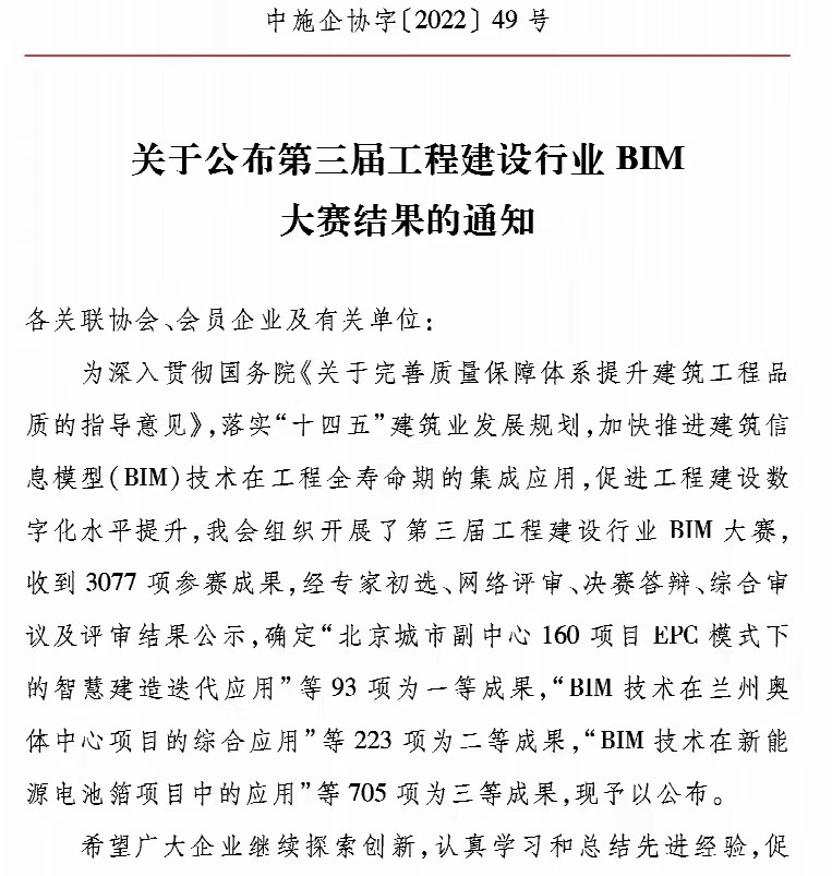 公司中海望京府項(xiàng)目施工階段BIM綜合應(yīng)用成果榮獲國家級BIM大賽三等獎(jiǎng)