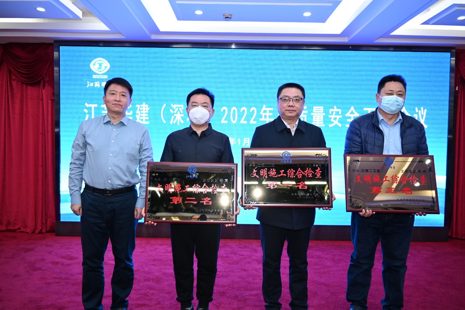 會(huì)議表彰了2022年下半年先進(jìn)項(xiàng)目經(jīng)理部、安全生產(chǎn)、文明施工檢查綜合評(píng)分前三名和“安全生產(chǎn)月”活動(dòng)前三名,公司總經(jīng)理吳碧橋?yàn)楂@獎(jiǎng)工程處頒發(fā)了榮譽(yù)獎(jiǎng)牌。