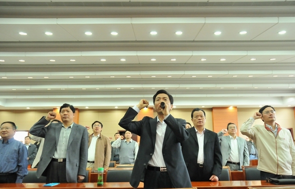 揚州建工控股系統(tǒng)組織黨員干部到揚州市警示教育基地參觀接受教育 時間:2011-05-27 5422 5月27日上午,建工控股公司機關(guān)、華建總部黨員干部和揚建、揚安、華宏、中專校等單位領(lǐng)導班子成員及黨務(wù)、紀檢、財務(wù)、行政等部門中層負責人共80多人,到揚州市警示教育基地參觀接受教育,大家觀看了預防腐敗警示教育宣傳圖片、電視專題片和違法犯罪人員現(xiàn)身說法錄像。建控公司黨委書記、董事長陸金龍在參觀結(jié)束前作了誡勉講話,指出這次建控系統(tǒng)組織黨員干部開展廉潔自律警示教育活動,是加強干部能力作風建設(shè)的一項重要內(nèi)容。一系列反面案例帶來的教訓和思考,令大家深受觸動。見不賢而內(nèi)自省。建控系統(tǒng)廣大黨員干部要從確立正確的角色定位、樹立合理的人生追求、建立完善的制度保障、打造健康的從業(yè)環(huán)境四個方面入手,進一步加強廉政教育、樹立自律意識、保持清廉本色,從而提高干事業(yè)、謀發(fā)展的能力和水平,為創(chuàng)建“三個揚州”、建設(shè)和諧社會作出應(yīng)有貢獻。最后,陸金龍同志帶領(lǐng)大家集體進行了莊嚴的廉政承諾宣誓。