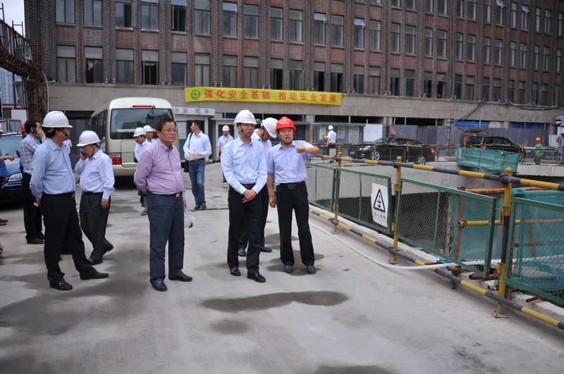 隨后,陸董事長一行還到洛克外灘源項目進行了參觀指導,對該項目在建和已完工部分進行了現場察看。洛克外灘源項目是江蘇建筑企業在外灘承建的唯一世博項目,工藝要求高,施工難度大,考察團一行對該項目給予極高的評價。