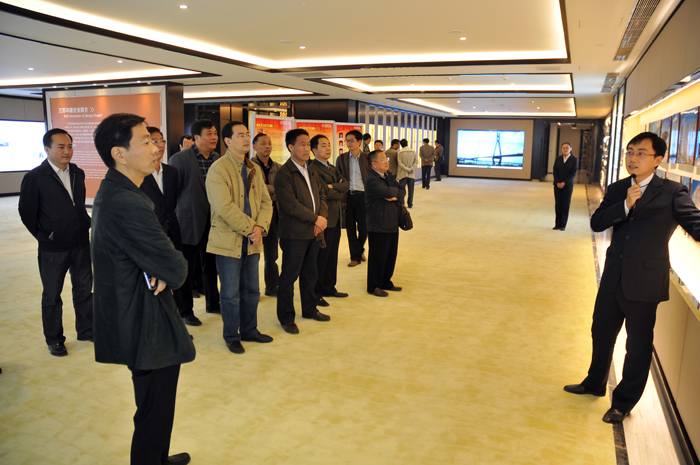 江蘇華建企業展示中心正式啟用 時間:2013-11-08 4089 11月8日,江蘇華建企業展示中心舉行揭牌儀式正式啟用,標志著華建對外形象的展示又多了一個全面展示的窗口。公司董事長陸金龍為展示中心揭牌并致辭,公司在揚領導吳士茂、程杰、錢啟明、王宏、陸俊等出席儀式。 企業展示中心位于揚州繁華地段的建設大廈,總面積近2000平米,企業展示區以文字、圖片、視頻等形式,從不同視角全面、直觀、有效地展現了公司發展歷程、區域公司風采、多元發展、精品工程、企業文化、企業榮譽等內容。展示中心同時配有小型會議室和接待場所,可安排公司一般性的商務談判和對外接待。