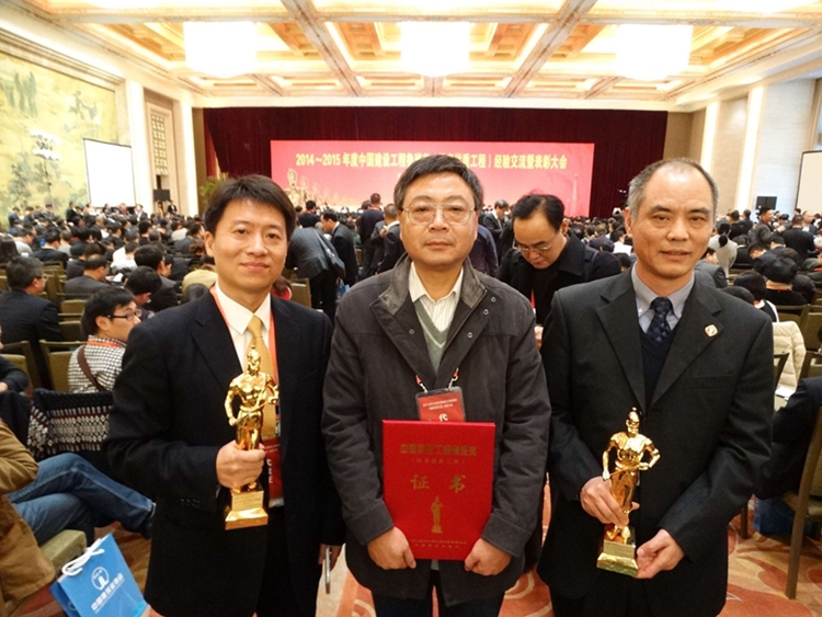 1117日,20142015年度中國建設工程魯班獎頒獎大會在北京釣魚臺國賓館舉行,會上對20142015年度魯班獎工程進行了隆重表彰,江蘇華建再次書寫揚州建筑業的傳奇故事:近四年來,為揚城捧回五尊魯班獎;本次表彰又在同一評獎年度有兩項工程載入中國建設工程質量最高獎的史冊,江蘇華建累計獲得中國建設工程界的“奧斯卡”——魯班獎已達21項,為揚州建筑之鄉再揚美名,也為“建筑神兵”的美譽再添新績。公司副董事長、副總經理陳榮春代表公司上臺領獎,公司副董事長、總經理宗有農在大會現場接受了揚州電視臺、揚州日報記者專訪。