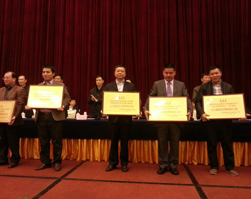 公司1項目喜獲“全國AAA級安全文明標準化工地”榮譽稱號 時間:2013-11-16 4249 11月14日,中國建筑業協會建筑安全分會2013年年會在合肥召開,會議通報表彰了一批2013年度全國AAA級安全文明標準化工地,共有549個項目上榜。海南分公司承建的“倚能 •美林灣”項目忝列其中,這也是海南分公司榮獲的第四項全國AAA級安全文明標準化工地。公司副總經理、海南區域公司總經理王宏出席會議。 據了解,AAA級安全標準化工地是全國安全文明施工方面的最高獎項,被業內譽為安全文明施工方面的“魯班獎”,旨在規范施工安全生產工作,保障建筑職工生命安全與健康。該項榮譽的獲得,表明倚能 •美林灣項目安全文明施工管理水平邁上更高的臺階。海南分公司將以此次獎評為契機,繼續扎實工作,將安全管理工作做得更好。