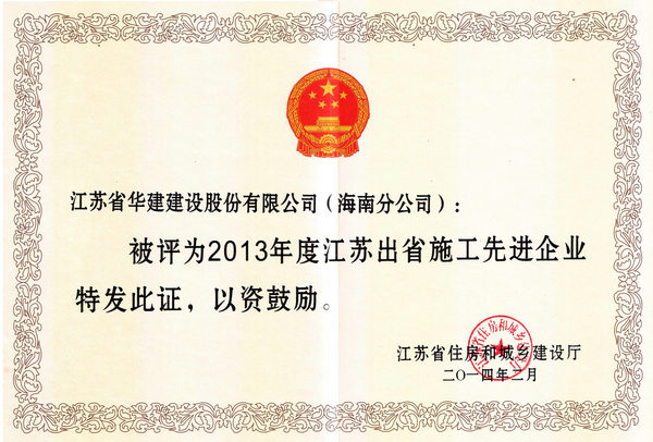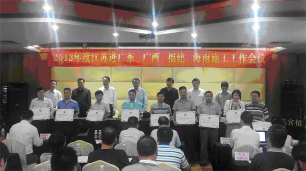 海南分公司榮獲2013年江蘇進粵、桂、閩、瓊施工先進企業 時間:2014-04-28 4180 4月25日,2013年度江蘇進廣東、廣西、福建、海南施工工作會議在珠海市市委黨校學苑賓館召開。會上,海南分公司榮獲“2013年江蘇進粵、桂、閩、瓊施工先進企業”,高家馴被表彰為“2013年江蘇進粵、桂、閩、瓊施工優秀企業經理”,1人被評為優秀建造師、2人分別被評為質量安全和經營財務管理先進個人。 另訊:4月19日,從中國施工企業管理協會第29次年會傳來喜訊,海南公司匡新益被評為2013年度“全國工程建設優秀項目經理”。