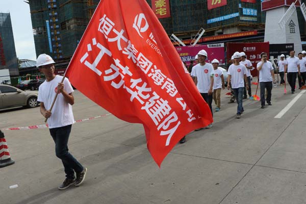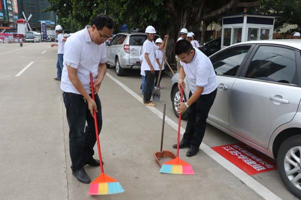 江蘇華建積極響應海口市“雙創”活動 時間:2015-09-01 3063 8月29日上午,海口市龍華區“雙創”啟動大會在我公司承建的恒大外灘中心項目現場召開,龍華區區委書記王東等領導出席啟動儀式,公司副總、海南分公司總經理王宏到會并做表態發言。 隨后,會場舉辦“我愛海口,力爭雙創”授旗儀式,并組織志愿者“自掃門前雪”,手拿掃把、簸箕等工具,將所屬衛生轄區打掃得干干凈凈,以實際行動來踐行“雙創”工作。