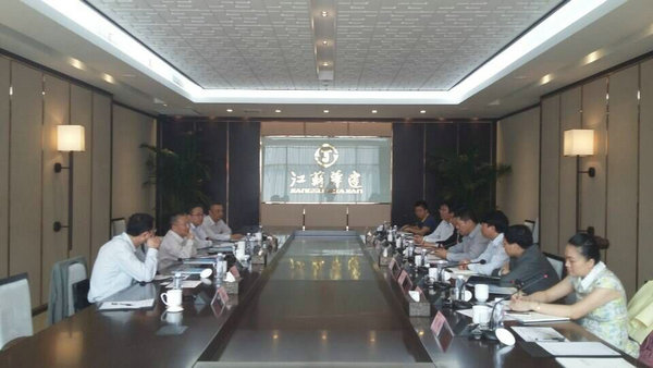 海建集團(tuán)總裁吳亞春一行赴華建總部考察交流 時(shí)間:2015-10-19 4491 10月18日上午,海南省建設(shè)集團(tuán)有限公司總裁吳亞春一行赴公司總部考察交流,公司常務(wù)副總程杰、海南公司副總高家馴及相關(guān)部門負(fù)責(zé)人參加接待交流。交流會(huì)上,程總介紹了公司的發(fā)展歷程和基本情況,雙方就蘇瓊兩地建筑施工企業(yè)發(fā)展、用人機(jī)制、分配機(jī)制和管理理念等方面分享各自的經(jīng)驗(yàn)與不足,并就尋求深度合作交流了意向,整個(gè)交流會(huì)氣氛活躍,雙方都感到受益匪淺。