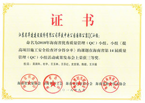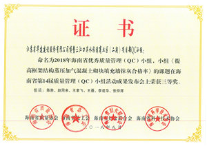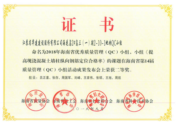 海南公司五項QC成果獲得省級表彰 時間:2018-09-03 3453 日前,海南省質量協會公布了2018年海南省“優秀質量管理(QC)小組”活動成果評比結果,海南分公司共有5項成果受到表彰。其中,海花島2#島三(一)期2-10-1地塊QC小組榮獲二等獎,博鰲三江口濱水旅游商業區(二期)項目部QC小組、三亞婦幼保健院整體搬遷(新址)建設項目QC小組、恒大海上帝景QC小組、華盛中央公園國際公寓QC小組榮獲三等獎。 (技術質量處)