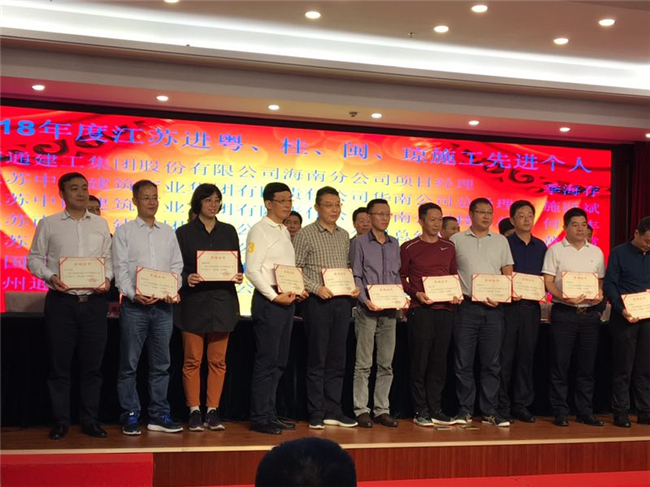海南公司喜獲江蘇出省施工多項榮譽 時間:2019-03-24 3468 3月22日,江蘇省住建廳南方辦在南寧召開2019年江蘇建筑業南方區工作會議。會上,江蘇華建海南分公司、湖北分公司被江蘇省住建廳表彰為2018年度出省施工先進集體;高家馴、杜宇、吳潤年、劉遠被表彰為2018年度出省建筑施工先進個人;喬繼承、湯小慶、陳超分別被江蘇省政府駐深辦表彰為2018年度江蘇進粵、桂、閩、瓊經營財務、新聞報道、施工質量先進個人。 會上江蘇華建深圳分公司、珠海分公司、惠州分公司等兄弟單位同時被表彰為先進集體,另有一批先進個人分別受到表彰。(辦公室)
