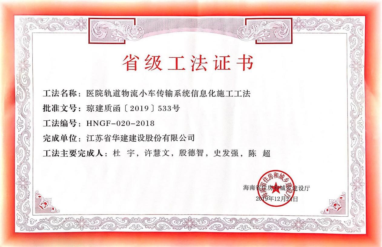 海南分公司新增1項省省級工法 時間:2020-01-10 3996 2019年12月24日,海南省住房和城鄉建設廳公布了2018年度海南省省級工法評審結果,我司《醫院軌道物流小車傳輸系統信息化施工工法》成功入選。