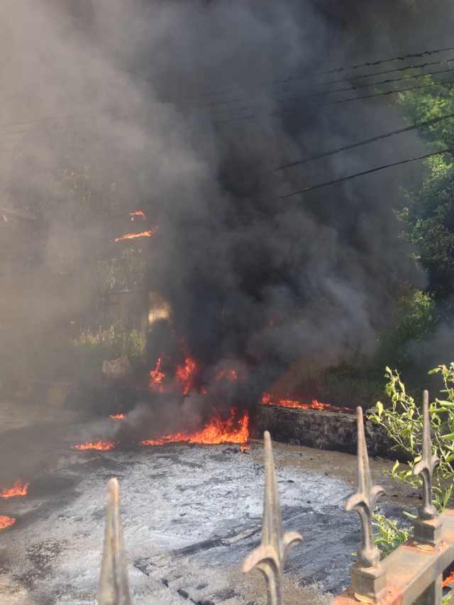 鄰居意外起火 項目部奮力撲救 時間:2014-07-30 4663 7月30日上午,珠海公司山海一品項目隔壁居民樓樓下堆放的裝修材料,因不明原因燃起大火,濃煙滾滾,火勢迅速蔓延,材料正上方的線纜部分起火。到項目現場檢查工作的公司副總經理盧達,立即組織項目部人員用工地現場滅火器等消防器材,在消防人員趕來之前撲滅大火,避免了重大財產損失。