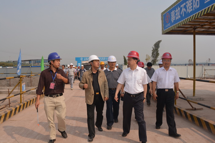 10月9日上午,廣安市長(zhǎng)羅增斌率廣安市、區(qū)政府四套班子成員赴我司承建的官盛新區(qū)建設(shè)項(xiàng)目現(xiàn)場(chǎng)視察。新區(qū)管委會(huì)副主任李常兵簡(jiǎn)要介紹了項(xiàng)目整體概況,項(xiàng)目副總指揮嚴(yán)正濤就項(xiàng)目進(jìn)展作匯報(bào)。在具體查看現(xiàn)場(chǎng)施工情況和了解項(xiàng)目進(jìn)度及時(shí)間計(jì)劃后,羅市長(zhǎng)對(duì)項(xiàng)目整體推進(jìn)情況表示滿意。他指出,官盛新區(qū)建設(shè)項(xiàng)目是大項(xiàng)目,是廣安紀(jì)念小平誕辰110周年的重點(diǎn)工程,建成后也將是華建的一座豐碑,項(xiàng)目建設(shè)在抓進(jìn)度的同時(shí)要確保質(zhì)量,對(duì)華建承建官盛新區(qū)有信心,相信華建一定能優(yōu)質(zhì)高效地完成項(xiàng)目建設(shè),交出一份各方都滿意的答卷。