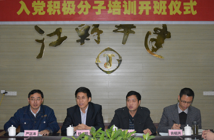 支部書記嚴正濤主持開班儀式并作動員講話。他指出,舉辦本次培訓班的主要目的就在于不斷壯大項目支部入黨積極分子隊伍,進一步提高其黨性修養(yǎng)和綜合素質(zhì),夯實黨員發(fā)展工作基礎。對參加本次培訓的入黨積極分子他提出三點要求:一是要明確學習目的,端正學習態(tài)度;二是要提高思想認識、端正入黨動機;三是要加強黨性鍛煉,爭取早日入黨。官盛鎮(zhèn)黨委書記李常兵結合個人工作實際,與參加培訓的入黨積極分子分享了作為一名共產(chǎn)黨員所肩負的使命和責任的心得體會。錢明書記則分別用三個“注重”來詮釋如何實現(xiàn)從一名積極分子成長為一名合格共產(chǎn)黨員的轉(zhuǎn)變,即注重踐行宗旨,注重自覺奮進,注重建功立業(yè)。