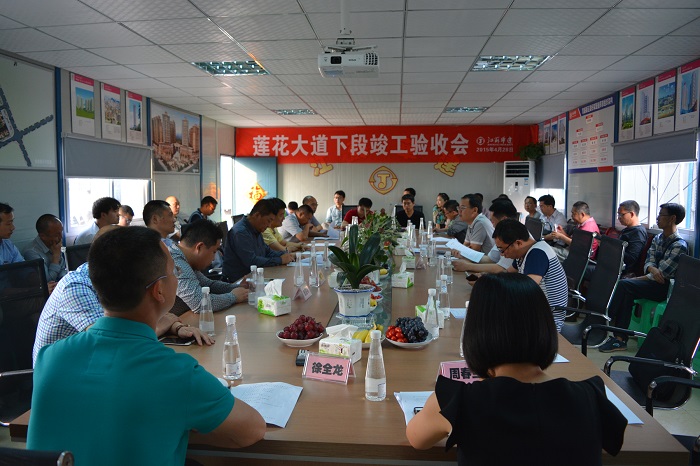 本次驗收共分四個驗收組,即景觀工程驗收組、道路工程驗收組、照明、交通、通信及電力工程驗收組、排水及橋涵工程驗收工程驗收組。驗收會前四個驗收組已分別進行了現場驗收和資料檢查,對檢查情況進行了點評匯總。參會領導及其他建設行政主管部門代表還步行參觀了蓮花大道下段及官盛春天安置房項目1#樓封頂現場。