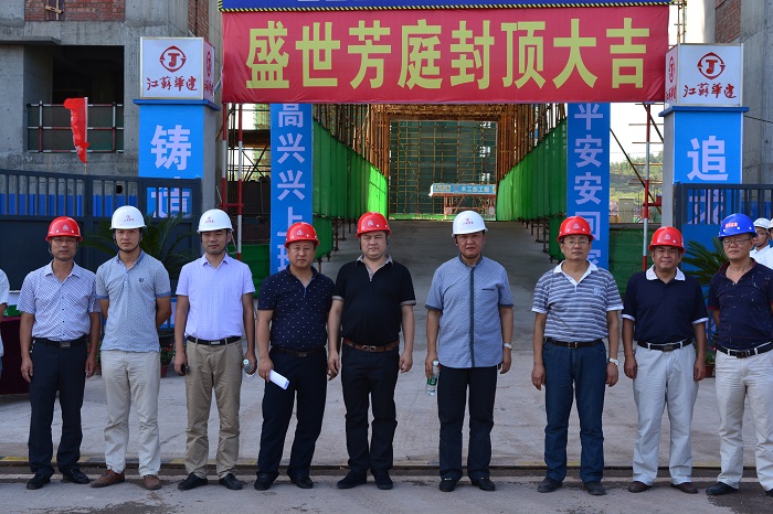 盛世芳庭項目舉行封頂儀式 時間:2015-08-04 5204 8月3日下午,公司承建的盛世芳庭項目工程1-2#樓舉行封頂儀式。廣安區(qū)人大主任蔣成文、紀委書記唐宗致、珠海區(qū)域公司總經理繆國樞以及職能部門相關同志出席封頂儀式。 盛世芳庭項目是廣安官盛新區(qū)基礎設施暨美好家園建設項目(總投資30億元)兩個安置房項目之一,總建筑面積196535.8m2,總造價約4.4億元。