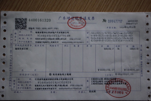 珠海區域公司第一張增值稅發票成功開具 時間:2016-06-01 3167 建筑行業“營改增”自5月1日起正式實施,公司領導高度重視“營改增”工作,先后完成了稅控設備軟硬件更新、數次的“營改增”知識培訓及交流會,并在主管國稅局完成了有關一般納稅人認定、增值稅發票額度調整、公司老項目備案等工作。 5月31日,財務處成功開具了第一張增值稅普通發票,此票為公司第五項目部承擔施工任務的晉和天慶花園總承包工程使用,走出了公司“營改增”工作的堅實一步。