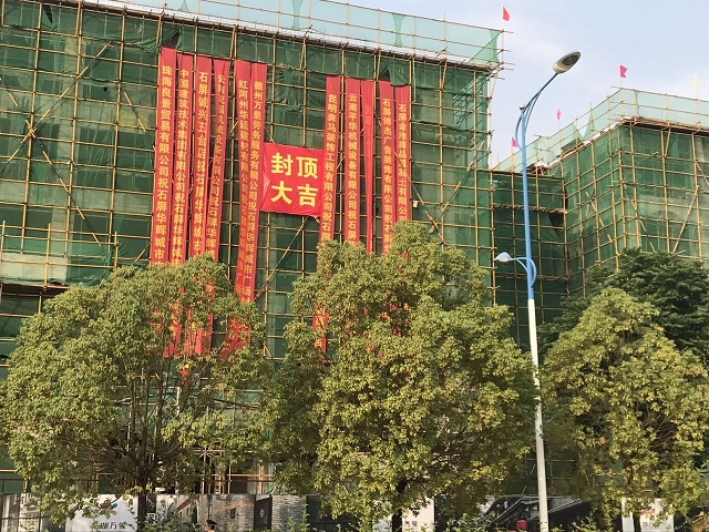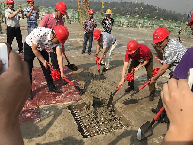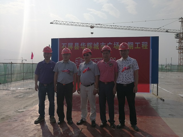 公司首個在滇項目——華輝城市廣場順利封頂 時間:2017-05-07 3369 5月6日,公司首個在滇項目——云南石屏縣華輝城市廣場舉行主體結構封頂儀式。重慶分公司總經理嚴正濤出席儀式。 華輝城市廣場項目位于石屏縣新城核心中央地段,為該縣城的“CBD”。整個建筑面積為18萬平方米,地上面積為13.4萬㎡,地下4.5萬平方米。其中一期工程建筑面積為93843.78平方米,承包范圍土建、水電、消防、門窗、室外園林綠化等工程(即除電梯工程外),一期主要以商業開發為主,項目結構為框架,以3層結構為主,預計2017年6月竣工。