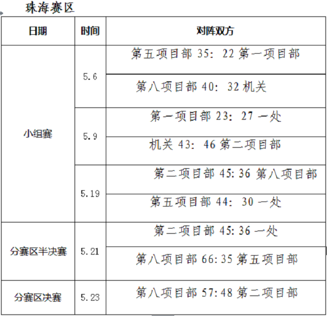 總決賽在珠海賽區(qū)冠軍第八項(xiàng)目部與重慶賽區(qū)冠軍第二工程處之間展開(kāi)。