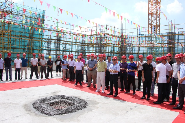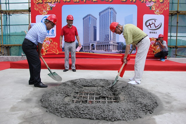 橫琴隆義廣場實現主體結構全面封頂 時間:2017-08-18 3609 2017年8月18日,第五項目部承擔施工任務的橫琴隆義廣場項目舉行主體結構封頂儀式。珠海橫琴隆義國際投資有限公司董事長馬國義,珠海公司黨委書記繆國樞、總工程師周學軍、總會計師馮喜平及設計單位、參建單位、監理單位等50余人共同見證這一喜悅時刻。 該工程自開工籌備以來即被列為我公司重點創優項目,截止目前已獲評珠海市安全文明示范工地;通過廣東省安全文明示范工地初評;通過全國綠色施工示范工地過程驗收。較好地展現了我公司的綜合實力及企業形象。