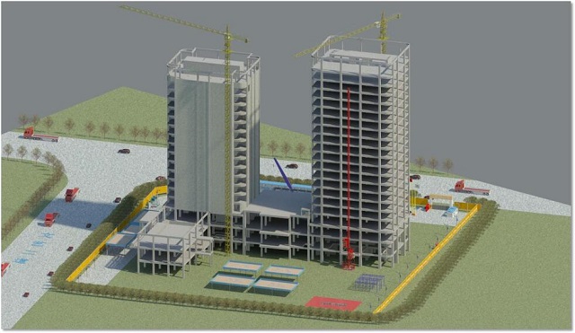 橫琴隆義廣場(chǎng)項(xiàng)目位于珠海橫琴自貿(mào)區(qū),工程造價(jià)為16000萬(wàn)元,建筑面積約60000平方米,由1棟17層和1棟20層的塔樓組成,最大高度為85.8米,合同工期730天。建成之后將成為橫琴島上的高檔酒店和寫(xiě)字樓。該工程運(yùn)用BIM技術(shù),珠海公司聯(lián)合華建設(shè)計(jì)院建立項(xiàng)目BIM設(shè)計(jì)模型,完成了多專(zhuān)業(yè)碰撞檢查、模型二次深化設(shè)計(jì)、凈高分析等工作。此外,公司在項(xiàng)目施工中還基于高精度BIM施工模型做到了施工臨時(shí)場(chǎng)地布置、BIM樣板引路、機(jī)電管線綜合優(yōu)化、鋁合金模板預(yù)拼裝、腳手架系統(tǒng)深化設(shè)計(jì)、動(dòng)態(tài)可視化交底、施工進(jìn)度計(jì)劃及造價(jià)控制等工作的優(yōu)化管理,項(xiàng)目結(jié)合二維碼的協(xié)同管理云平臺(tái),實(shí)現(xiàn)了“工廠預(yù)制加工”“掃碼組裝”“二維碼安全技術(shù)交底”“設(shè)備信息錄入”等智能化操作,在保證施工質(zhì)量的同時(shí)也極大地提高了協(xié)同工作的效率,使項(xiàng)目在施工成本、進(jìn)度、安全、質(zhì)量等方面的管理效率得到了巨大提升。