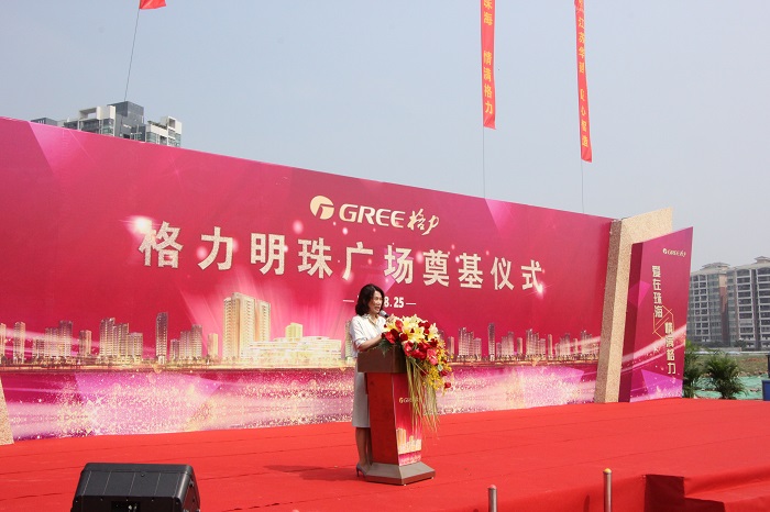 蘆曉鳳副市長代表珠海市政府對格力明珠廣場工程奠基表示熱烈祝賀并致辭:格力電器是中國制造的標桿品牌,是珠海實體經濟的重要支柱,長期以來為珠海經濟社會發展作出了重大貢獻。希望格力電器堅定不移地走創新發展道路,全面激發各類人才創新創造活力,進一步做強做優做大核心主業,搶占世界制高點、掌控技術話語權。珠海將積極實施“英才計劃”,為包括格力電器廣大員工在內的各類人才,提供更多保障和最優環境,真正讓各類人才在珠海留得下來、安得下心、干得成事。