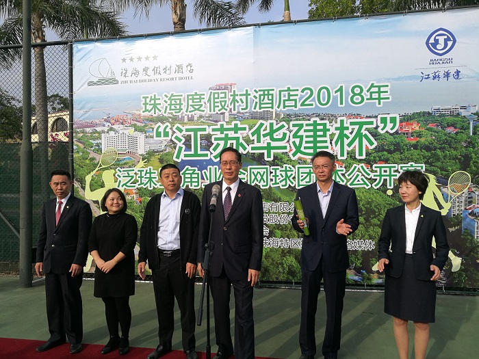 24-25日,2018年“江蘇華建杯”泛珠三角業(yè)余網(wǎng)球公開賽在珠海度假村網(wǎng)球場(chǎng)開賽,來自香港、澳門、廣州、佛山、深圳、珠海、中山、江門、肇慶的16支代表隊(duì)近200名男女高手在珠一決高下。他們代表著國(guó)內(nèi)業(yè)余網(wǎng)球較高水平。珠海區(qū)域公司總經(jīng)理呂方達(dá)和珠海度假村酒店董事長(zhǎng)李增利共同為比賽開球,并在比賽結(jié)束后為獲獎(jiǎng)球隊(duì)頒獎(jiǎng)。