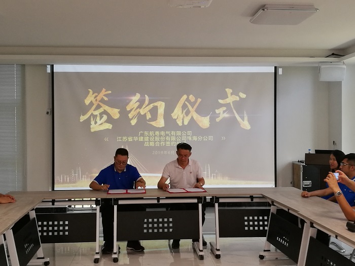 2019年6月15日,江蘇華建珠海分公司總經(jīng)理呂方達(dá)與廣東航粵電氣有限公司董事長(zhǎng)楊建豐分別代表雙方簽訂《戰(zhàn)略合作框架協(xié)議》。
