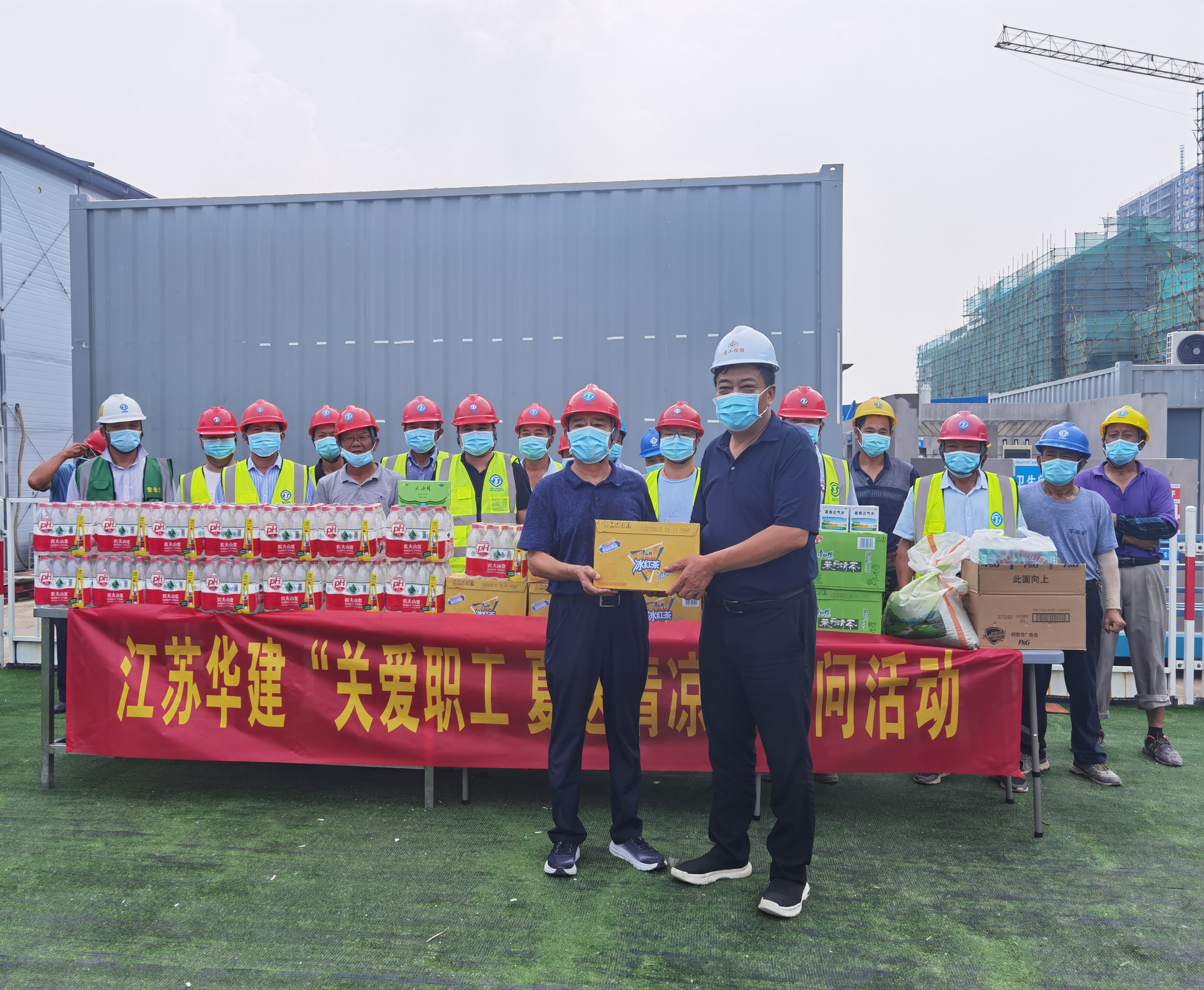 7月15日,建工控股、江蘇華建黨委副書記、工會主席錢啟明一行看望慰問高溫中堅守一線的在揚部...