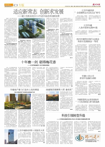 2月13日《揚州日報》C3整版刊發“揚州建工”專版,主要包括《適應新常態創新求發展——建工...