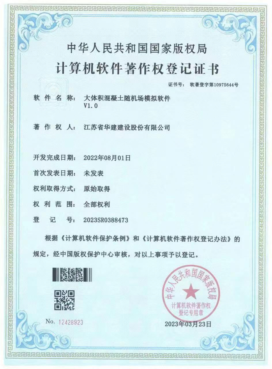 近日,國家版權局對江蘇華建自主研發的《大體積混凝土隨機場模擬軟件V1.0》軟件產品進行了知...