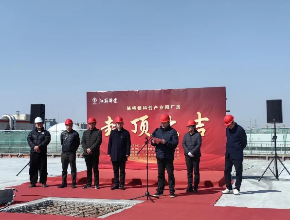 3月18日上午,施橋鎮科創產業園舉行了隆重的封頂儀式,江蘇華建黨委委員、副總經理王吉騫,施...