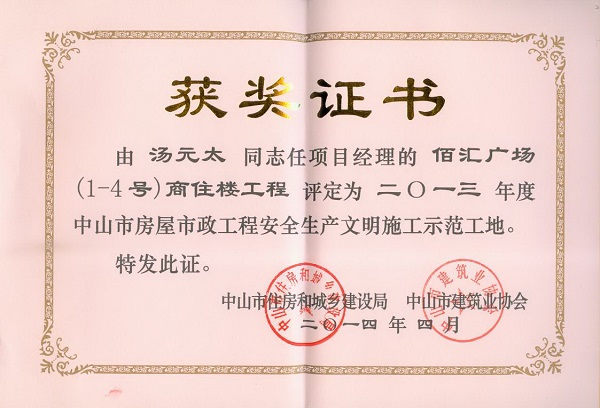 2013年度佰匯廣場商住樓工程中山市房屋市政工程安全生產文明...
