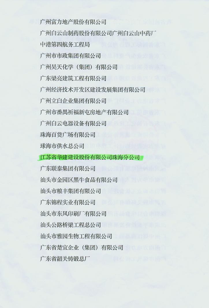 2010年廣東省連續十二年守合同重信用企業