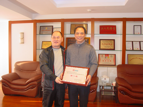 北京萬科領導親赴北京公司授牌 時間:2010-12-14 5576 北京公司在萬科地產第三季度萬科北京區域在建項目產品質量評估中,萬科藍山項目經專家現場實測實量,390個點合格率為99.39%,觀感質量評分、質量風險評估綜合得分97.35%,項目綜合排名蟬聯第一。12月12日上午,北京萬科副總經理孔祥明率工程部經理、項目總經理等一行,特地趕到我公司,把第一名的獎牌隆重授予我公司陳榮春總經理。陳總對萬科的肯定和信任表示感謝,并期望雙方進一步加強友好合作,永續真誠友誼。
