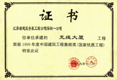 無(wú)線大廈(現(xiàn)名國(guó)通大廈)位于福田區(qū)新洲,建筑面積73069M2,高度201.5M,地下室2層,地上43層,是一座高智能化的電信寫(xiě)字樓,結(jié)構(gòu)設(shè)計(jì)為鋼筋砼框架一筒體結(jié)構(gòu),8-32層為無(wú)粘結(jié)預(yù)應(yīng)力樓板砼,工程總造價(jià)6億元。工程于1995年6月開(kāi)工,1997年12月竣工,施工中主要應(yīng)用了無(wú)粘結(jié)預(yù)應(yīng)力砼、高強(qiáng)泵送砼、粗直徑鋼筋連接、外墻干掛花崗巖等新技術(shù)。榮獲深圳市、廣東省、江蘇省的優(yōu)質(zhì)樣板工程,“江蘇省新技術(shù)應(yīng)用示范工程”、江蘇省“揚(yáng)子杯”獎(jiǎng)和99年度國(guó)家“魯班獎(jiǎng)”。