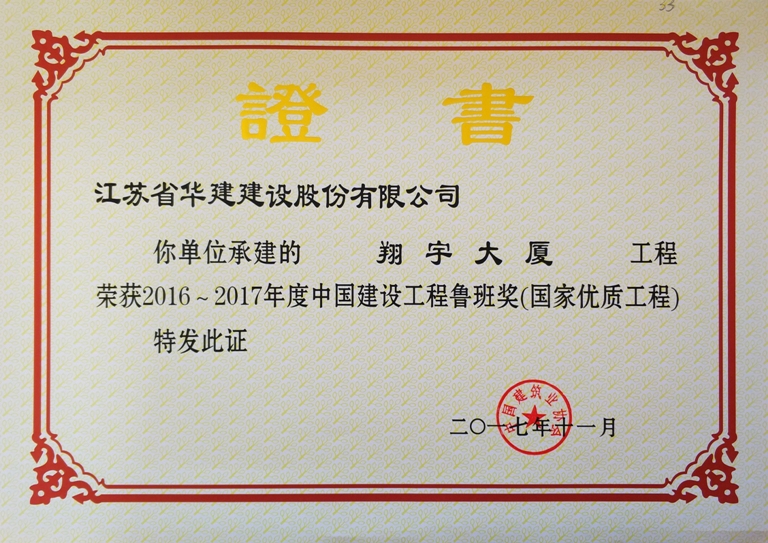翔宇大廈工程位于淮安市生態(tài)新城核心示范區(qū),北鄰景會路、西鄰致遠(yuǎn)路、南面為篆香樓路,交通便利地,由淮安新城房地產(chǎn)開發(fā)有限公司投資,東南大學(xué)建筑設(shè)計研究院設(shè)計,江蘇省華建建設(shè)股份有限公司總承包施工,總建筑面積90300平方米,其中地上72036平方米,地下18264平方米。工程由南北主樓、中裙樓和北裙樓組成,南主樓20層,北主樓22層,建筑高度88.6米,主體結(jié)構(gòu)為鋼筋混凝土框架剪力墻結(jié)構(gòu),基礎(chǔ)為樁+筏板基礎(chǔ)。該工程于2011年7月18日破土動工,于2014年9月9日竣工。該工程被評為住建部綠色施工科技示范工程、國家AAA級安全文明標(biāo)準(zhǔn)化工地和江蘇省建筑業(yè)新技術(shù)應(yīng)用示范工程。2016年被中建協(xié)評為2016—2017年度中國建設(shè)工程魯班獎(國家優(yōu)質(zhì)工程)。