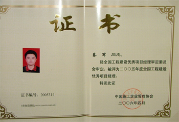 他本人因成績突出,工作勤勉,先后獲得“揚州市青年突擊手”、全國工程建設優(yōu)秀項目經(jīng)理等榮譽稱號。