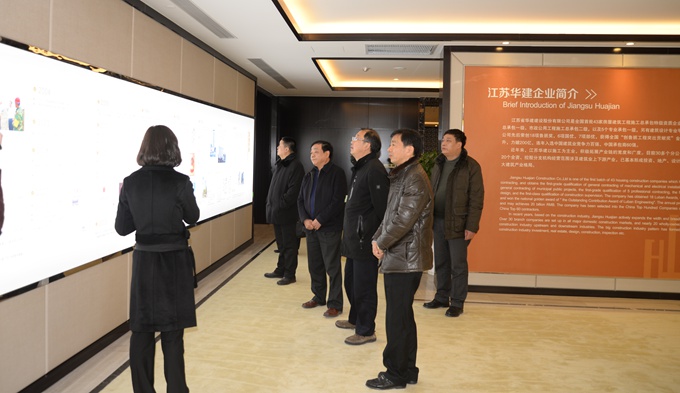 徐廳長一行饒有興致地參觀了華建企業展示廳,對華建近年取得的成就高度評價。在會議室,陸金龍董事長介紹了華建近年來的發展情況,并特別就公司發展轉型、分配機制、聯盟協作、建筑工業化等方面向省廳領導進行了匯報。省建管局紀迅、成際貴兩位副局長對華建近年在改革發展、體制機制創新等方面取得的成績表示贊賞,認為華建經驗值得向全省建筑企業介紹推廣。徐廳長對揚州建筑業整體發展進行了概括總結,他認為華建發展模式就是揚州建筑業的典型縮影,華建作為揚州建筑業、江蘇建筑業的一面旗幟當之無愧。顯著成績主要表現在五方面:一是人才梯隊建設日益完善;二是多元化發展整體格局形成;三是品牌效應不斷放大;四是工程任務飽滿經營范圍廣闊;五是發展質態良好潛力無限。近幾年在陸金龍董事長的帶領下,華建還在資本運作、戰略合作等方面創新不斷、亮點不斷,把工作做到了實處,取得了可喜成就。徐廳長指出,當前,江蘇建筑業正處在大浪淘沙的階段,建筑企業要不斷完善現代管理制度、更新現代管理理念、樹立現代文化觀念,推動企業轉型升級,他鼓勵華建要保持發展特色,揚長避短,打造“百年老店”,把華建這個揚州品牌、江蘇品牌發展成為全國著名品牌。聞道才副市長對徐廳長一行百忙之中來揚調研表示感謝,希望在省廳領導關心下揚州建筑業能進一步發展,揚州建筑企業能夠取得長足進步。