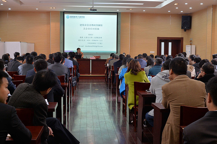 此次培訓(xùn)特邀市國(guó)家稅務(wù)學(xué)院陳斌才教授主講。陳教授就建筑業(yè)營(yíng)改增政策及企業(yè)應(yīng)對(duì)措施作了專業(yè)分析和講解,并與參培人員進(jìn)行了互動(dòng)交流,使參培人員對(duì)建筑業(yè)營(yíng)改增有關(guān)政策有了更深刻的理解和認(rèn)識(shí),達(dá)到了預(yù)期效果。