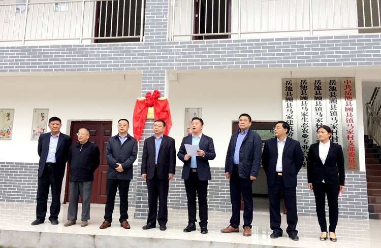 26日下午,王宏董事長一行在岳池縣代理縣長譚云、縣委常委劉俊的陪同下,前往公司對口扶貧的岳池縣顧縣鎮馬家村,參加公司援建的“江蘇華建馬家村村民活動中心”揭牌儀式。