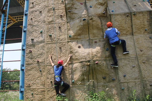 面對(duì)技巧性和冒險(xiǎn)性較強(qiáng)的“巖上芭蕾”,大家紛紛挑戰(zhàn)自我,勇敢攀登,體驗(yàn)了一把“蜘蛛俠”飛檐走壁的瀟灑;在挑戰(zhàn)五分鐘項(xiàng)目中,所有隊(duì)員群策群力,以“教科書(shū)”般的團(tuán)隊(duì)協(xié)作能力與默契精神,用最短時(shí)間高效地完成了四個(gè)小項(xiàng)目的考核挑戰(zhàn),被培訓(xùn)老師點(diǎn)贊為“卓越團(tuán)隊(duì)”;動(dòng)力繩圈項(xiàng)目讓大家感受到了團(tuán)隊(duì)的力量,聲聲吶喊中迸發(fā)出的堅(jiān)定和不服輸?shù)木耥憦卦诿⑼Π蔚乃闪种小C课恍』锇槔鄄⒖鞓?lè)著,懂得要有敢于拼搏的精神和極強(qiáng)的團(tuán)隊(duì)榮譽(yù)感,才能完美地贏得每一次挑戰(zhàn)。