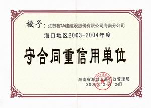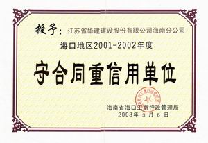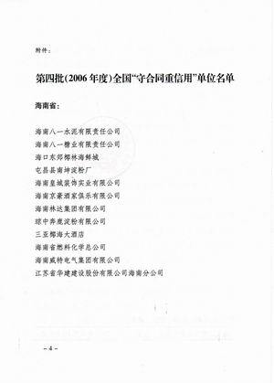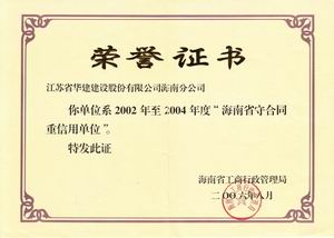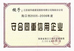 企業誠信榮譽 時間:2019-01-01 9059 2001-2002年度海口市守合同重信用 2003-2004年度海口市守合同重信用 2005-2006年度海口市守合同重信用 2002-2004年度海南省守合同重信用 2006年度全國守合同重信用1 2006年度全國守合同重信用2 2006年度全國守合同重信用3 2006年度全國守合同重信用4 2012年度海南省守合同重信用