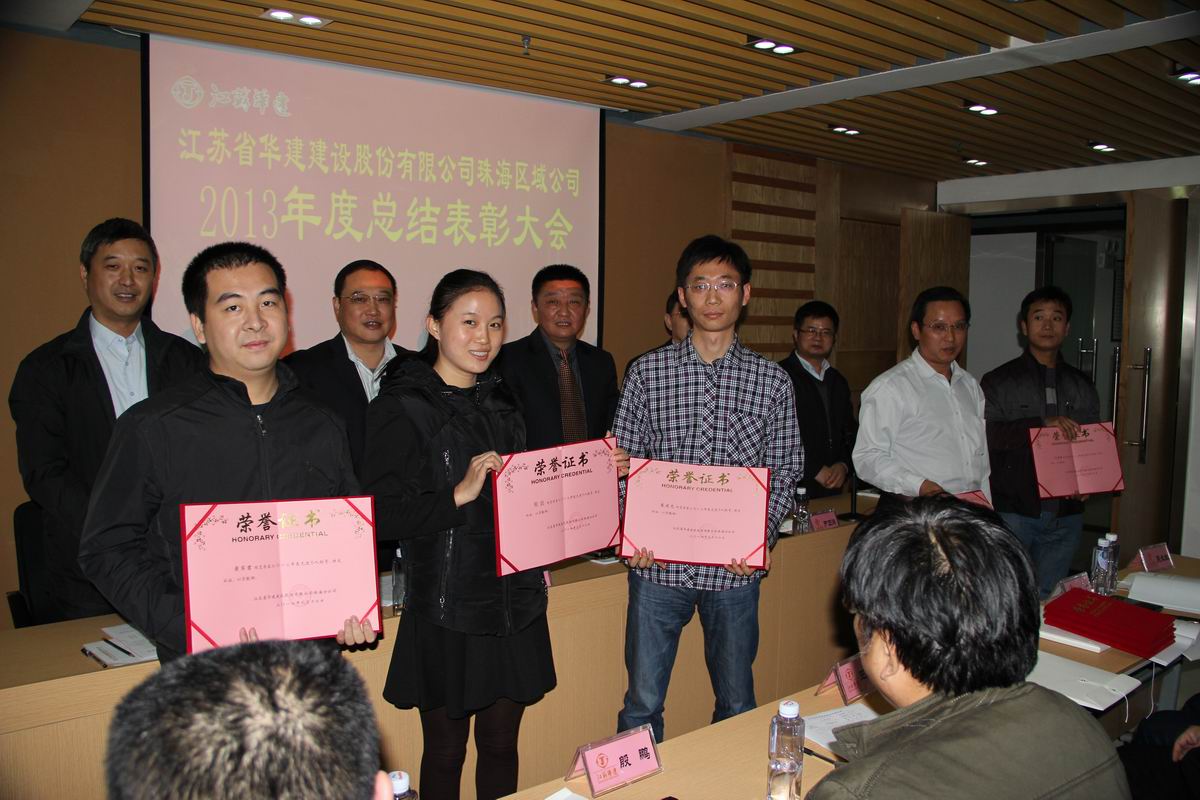2014年1月12日下午,江蘇華建珠海區(qū)域公司召開2013年度總結(jié)表彰大會(huì)。為響應(yīng)中央精簡會(huì)議活動(dòng)、切實(shí)改進(jìn)會(huì)風(fēng)要求,本次會(huì)議地點(diǎn)選定在珠海區(qū)域公司會(huì)議室,會(huì)場布置簡樸,會(huì)議議程緊密圍繞工作展開。江蘇華建副總經(jīng)理、珠海區(qū)域公司總經(jīng)理繆國樞作2013年度工作報(bào)告,全面總結(jié)珠海區(qū)域公司2013年度工作,并對2014年工作進(jìn)行部署。嚴(yán)正濤副總經(jīng)理宣讀了珠海區(qū)域公司2014年度生產(chǎn)經(jīng)營工作計(jì)劃,馮喜平總會(huì)計(jì)師宣讀加強(qiáng)財(cái)務(wù)管理工作的通知,周學(xué)軍副總經(jīng)理、總工程師宣讀對2013年度先進(jìn)集體和先進(jìn)個(gè)人的表彰決定。會(huì)上,繆國樞總經(jīng)理代表區(qū)域公司與各工程處、直管項(xiàng)目部負(fù)責(zé)人簽訂內(nèi)部承包管理協(xié)議,明確各自的職責(zé),“分得清楚”,才能“合得愉快”。