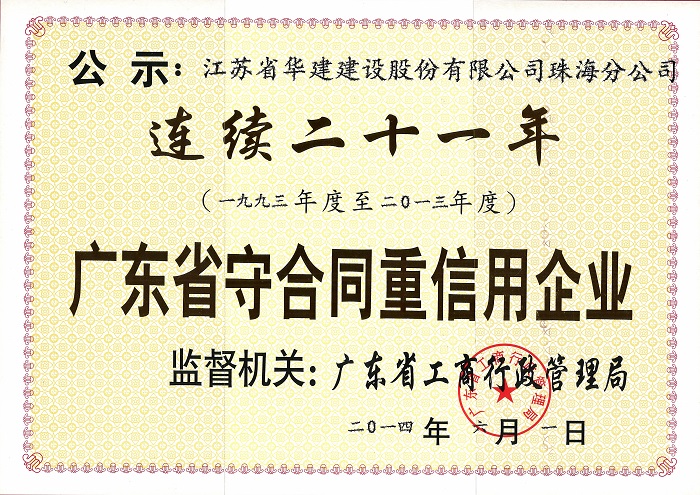 2014年度江蘇進粵、桂、閩、瓊施工先進企業